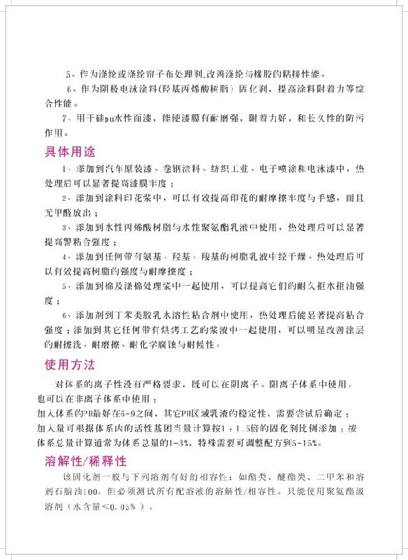 • 用途: 水性油墨,水性胶黏剂,水性印花胶