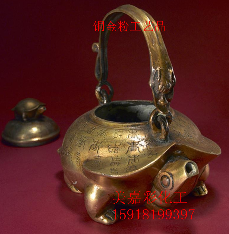 佛山美嘉彩15918199397铜金属粉是一种浮型片状颜料,由一定比例的铜、锌和铝合金,经熔炼、球磨、分级到所需要的规格和效果而成。铜金粉的色相可分为黄金粉、青金粉、红金粉、紫铜粉、古铜粉等。