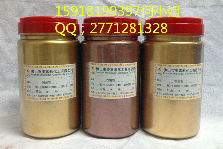 佛山美嘉彩0757-83876987铜金属粉是一种浮型片状颜料,由一定比例的铜、锌和铝合金,经熔炼、球磨、分级到所需要的规格和效果而成。铜金粉的色相可分为青金粉、红金粉、黄金粉、古铜粉等。铜金粉越粗,其金属感越强,越闪烁,亮度越好;反之越细,金属感减弱,色泽也越柔和,遮盖力也越好。