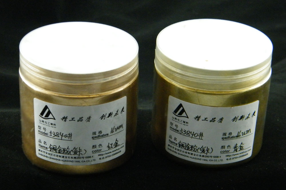 铜金粉俗称金粉,光亮性金属粉未,主要用于产品的表面处理,也可用来注塑。本公司主要经营德国艾卡,德国舒仑克,比利时及国产金粉。目数从240目至1200目。具有环保,抗氧化不变色,高亮度的特性。用户在操作的过程中,尽量使用低酸碱的耐酸金油和二甲2铜金粉是一种浮型片状颜料,由一定比例的铜、锌和铝的合金,经熔炼、球磨、分级到所需要的规格和效果而成。