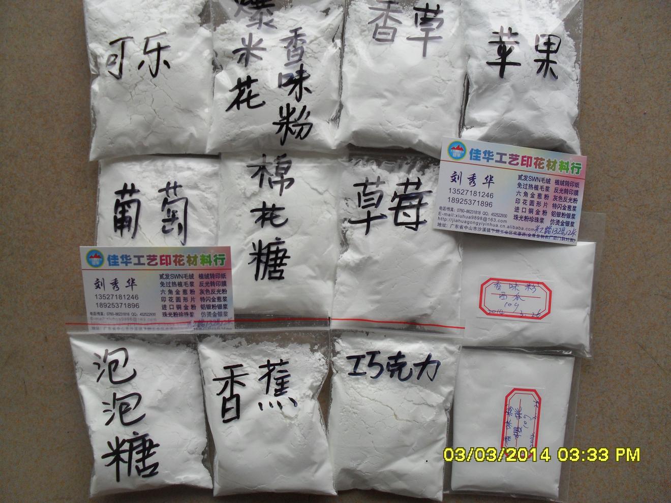 我们的长效香味粉一般是调油性油墨,纯香味水乳液才调水性油墨