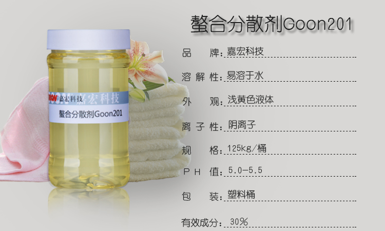 首页 > 产品供应 > 印花材料 > 东莞市嘉宏有机硅科技有限公司 > 螯合分散剂Goon201嘉宏纺织助剂前处理助剂厂家供应