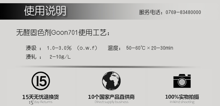 无醛固色剂Goon701大红,翠兰固色效果佳湿牢度,水洗牢度好