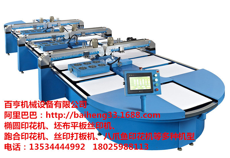 椭圆印花机、坯布平板丝印机、跑合印花机、丝印打板机、八爪鱼印花机等多种机型