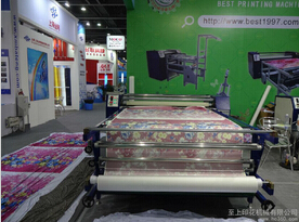 裁片两用滚筒印花机 适用范围:本产品适用于大型条幅、旗帜、无纺布、服装布料、毛巾、被单、鼠标垫等产品的升华转印,特别是成匹布料的连续转印。能够连续印花,速度快,满足客户大批量印花的需求。产品特点:本机器为裁片、匹布两用机器,既可以方便快捷的转印各种大小裁片产品