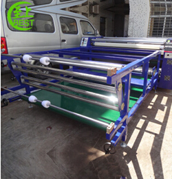 此款多功能滚筒转移印花机,经由平面转移印花机和前期普通滚筒转移印花加以改进,成功解决颜色不够深和不够均匀的现象,可以一次性解决各种数码印花,卷装布料,裁片,成衣,鼠标垫,不会产生色差,重影,等以往转移的难题。效率提50%以上,一台可以配顶4台平面升华转印机,双层内循环导热系统,比同等机器有效节能40%以上,全自动纠编毛毯,不走位。全自动加压装置,另印花颜色更深,速度更快。全自动松紧毛毯,开机不用毛毯运转,停电自动分离,有效保护毛毯寿命。