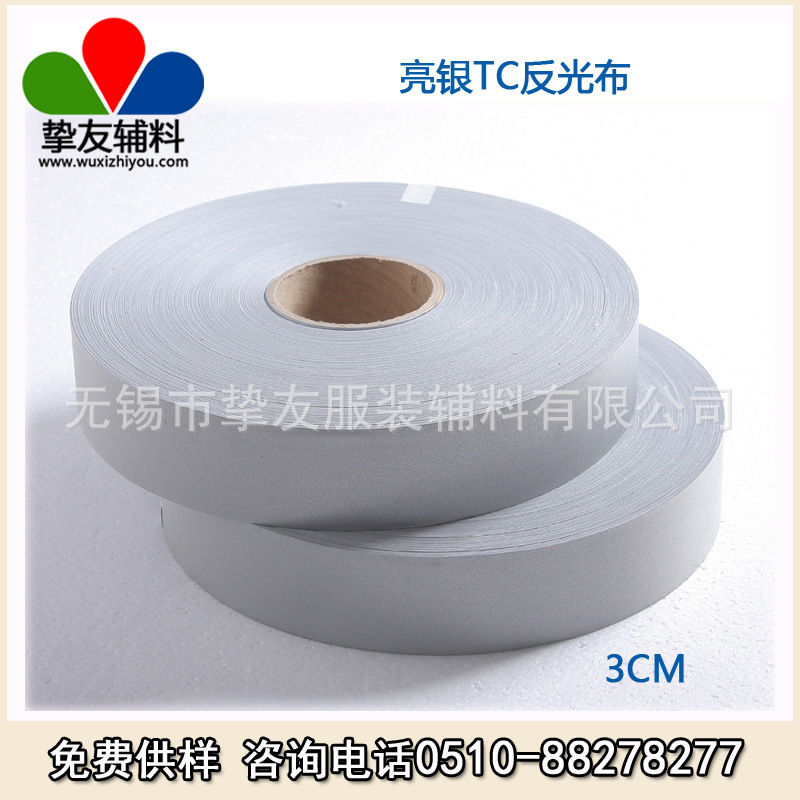 产品优点: 亮银TC反光反光布是有布上附有数百万的高折射率的微珠形成的外露型反光料,有很好的手感,反光性能好,警示效果极佳,耐用耐水洗,使用寿命长、安全性能优异,品质稳定,主要用于反光服、各类职业服、休闲服、运动服、时装、帽、手套、背包等,也可制作各类反光制品、饰品等。