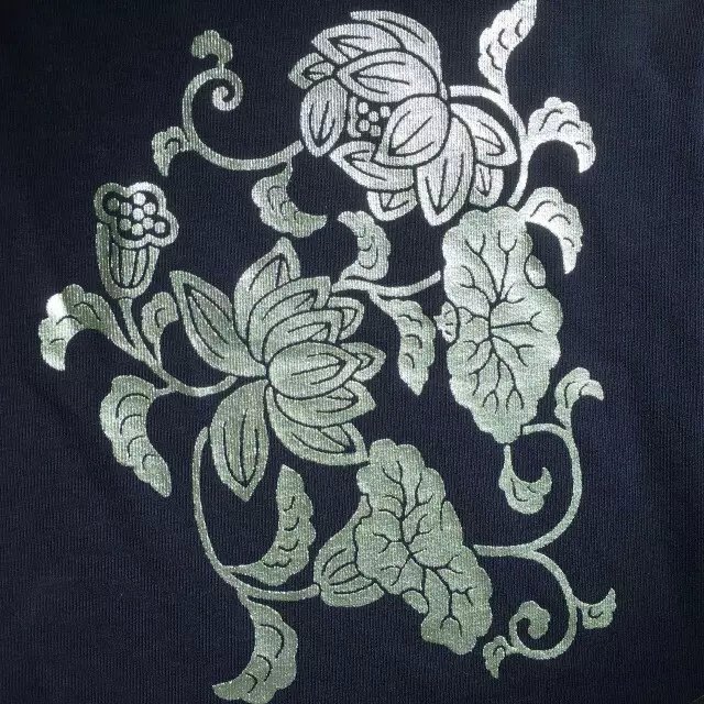 花工艺完成后,即可有烫金浆烫金印花的效果,而且仿烫金浆印花具有的耐水性