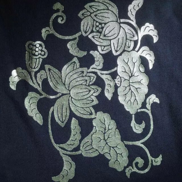 花工艺完成后,即可有烫金浆烫金印花的效果,而且仿烫金浆印花具有的耐水性