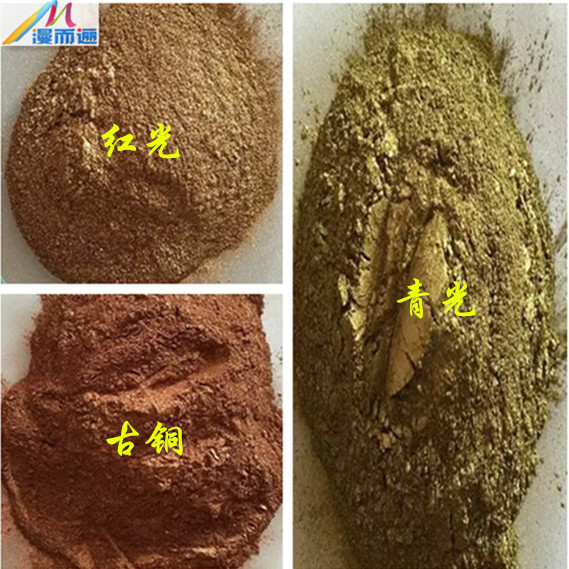 漫而逦铜金粉,按颜色分类有红金粉、青金粉、黄金粉、古铜粉(又称紫铜粉);按颗粒大小分类有200目、240目、400目、600目、800目、1000目、1200目、1500目、1800目。颗粒越粗越有光泽,相反颗粒细的比较暗,但遮盖力更好,漫而逦铜金粉广泛用于包装彩印、印染、织物印金印银、涂料、油漆油墨、纸业、外墙漆、塑胶、皮革、工艺品等各种行业。