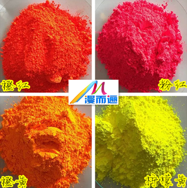 荧光颜料与一般颜料不同,它可将吸收的部分光(包括紫外线)转变成波长更长的且与正常反射光色调相近的光---荧光,使荧光颜料的颜色特别明亮和鲜艳。荧光颜料可分为热塑型、溶剂型、水溶性三大系列。热塑型主要用于低温段(140 -210)、高温段(180-295)塑料着色,适应各种塑料加工工艺,使产品具有强烈的荧光效果。较高的着色力、热光稳定性良好的兼容性和极佳的分散性。溶剂型主要应用在涂料、油墨,它具有细而均匀的粒径和饱满、亮丽、纯正的色相,具有耐溶性,抗渗色性和提供良好的遮盖力。水溶性可应用于水性和各种非极性溶剂体系。如印染色浆、水性油墨,使产品具有极好的成膜性,高着色力和高光泽度等特点。 产品特性:耐温热塑型荧光颜料,适用各种塑料产品:聚乙稀、聚丙稀、聚苯乙烯等。选用纯净、透明的塑料则会达到最佳鲜艳的色彩。溶剂型和水溶性荧光颜料,可耐甲苯、二甲苯、重芳烃类有机溶剂,不耐低分子醇、酮、酯等有机极性溶剂。