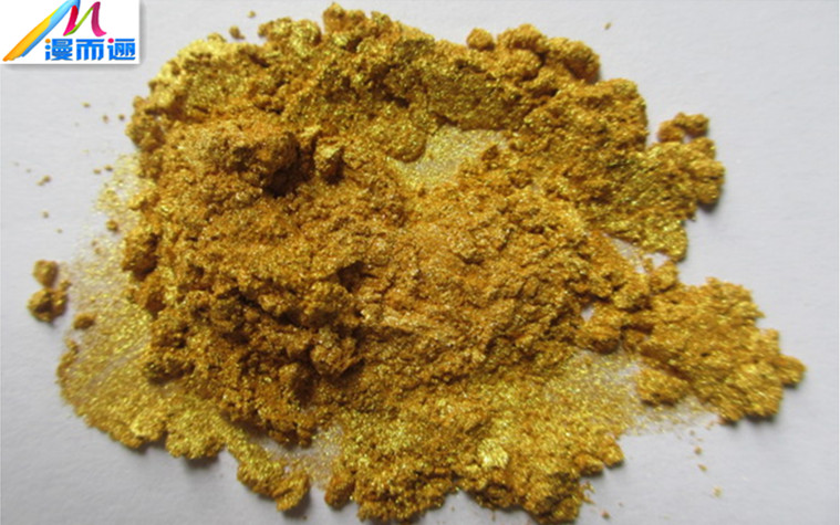漫而逦化工超闪金色珍珠光泽系列效果颜料除涂在云母表面包覆二氧化钛外,还增加了一层氧化铁包覆层,依靠精确控制二氧化钛和氧化铁不同的包覆厚度,产生各种具有较强金属光泽和高饱和度色彩的金色色彩,其色相极好,色泽齐全,在任何场合完全耐高温、耐酸、耐碱、耐化学药品性能、耐光照,可以完全取代金属颜料(如铜金粉等),克服后者易氧化、变色、易燃等缺点。漫而逦化工色珍珠金属光泽效果颜料色相齐全,可同时相互配色使用,不同的型号和比例相混合或与银白色系列相混合,会得到您所需的理想金色珍珠、金属光泽效果。
