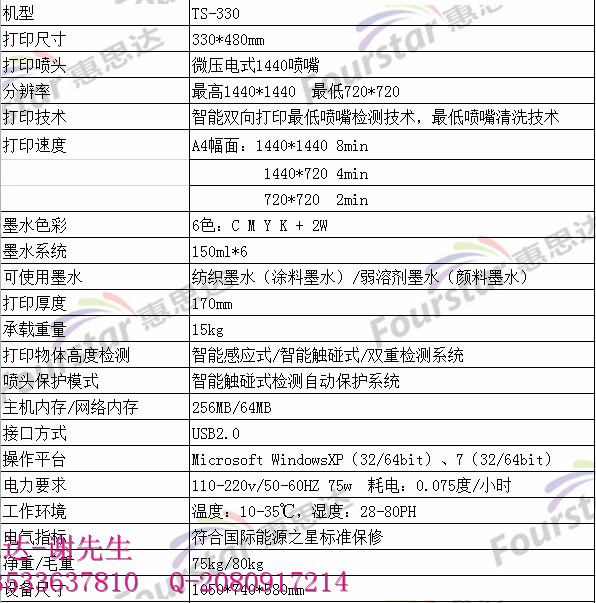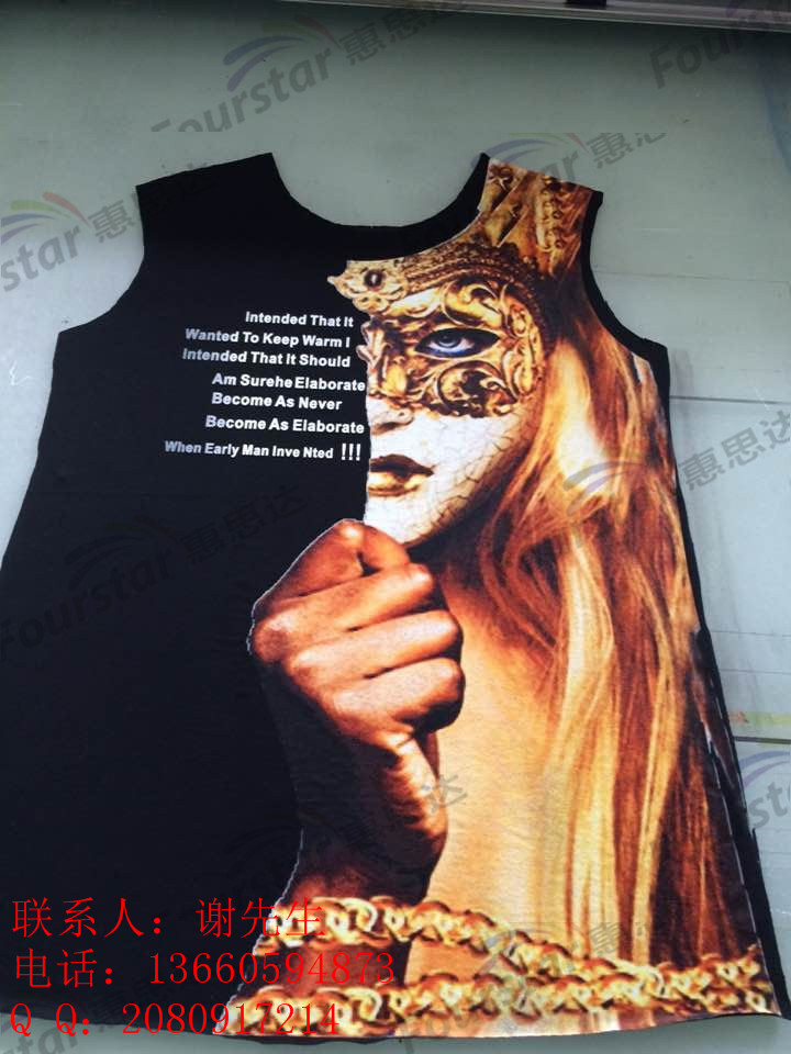 一、它无需制版、晒版、重复套色的步骤,无需丝网印刷和热转印方式所需要的各式型号的 工具、材料。采用我们的万能打印机,只需要另外准备一台普通电脑。一个操机人员就可以完全独立的进行印刷操作,省人力物力,并且方式简单,立等可取,对操机人员的经验要求低,只要了解简单的图片处理软件就可以了。