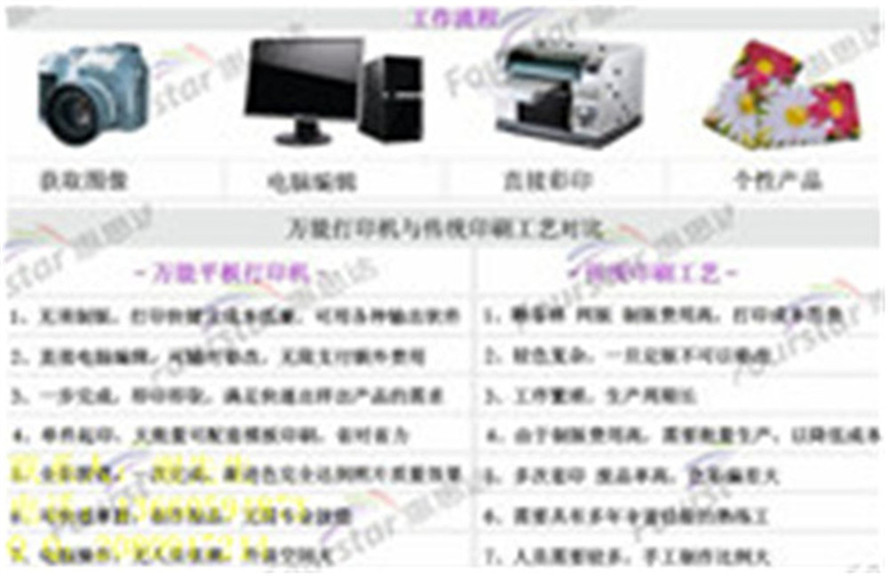 传统的印刷方式,如丝印无法根据图片做到所有颜色的过渡,所以丝印出来的效果会颜色界限分明,在两种色彩中间,很难根据画面本身而体现颜色过渡。但是很多产品都需要印刷商标、标识类等高精度、高复杂度的图案,礼品、工艺品行业应用就更加广泛。万能打印机能非常完美的满足该需求,充分体现出了强大的市场潜力。
