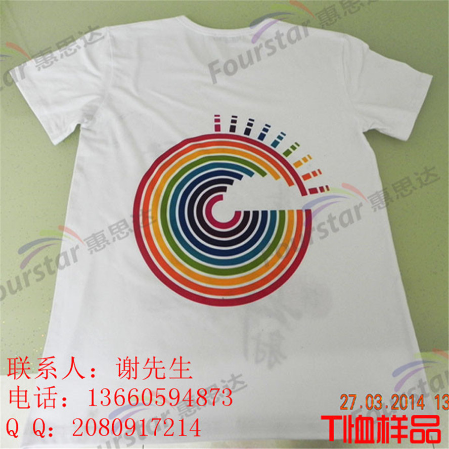 一、它无需制版、晒版、重复套色的步骤,无需丝网印刷和热转印方式所需要的各式型号的 工具、材料。采用我们的万能打印机,只需要另外准备一台普通电脑。一个操机人员就可以完全独立的进行印刷操作,省人力物力,并且方式简单,立等可取,对操机人员的经验要求低,只要了解简单的图片处理软件就可以了。