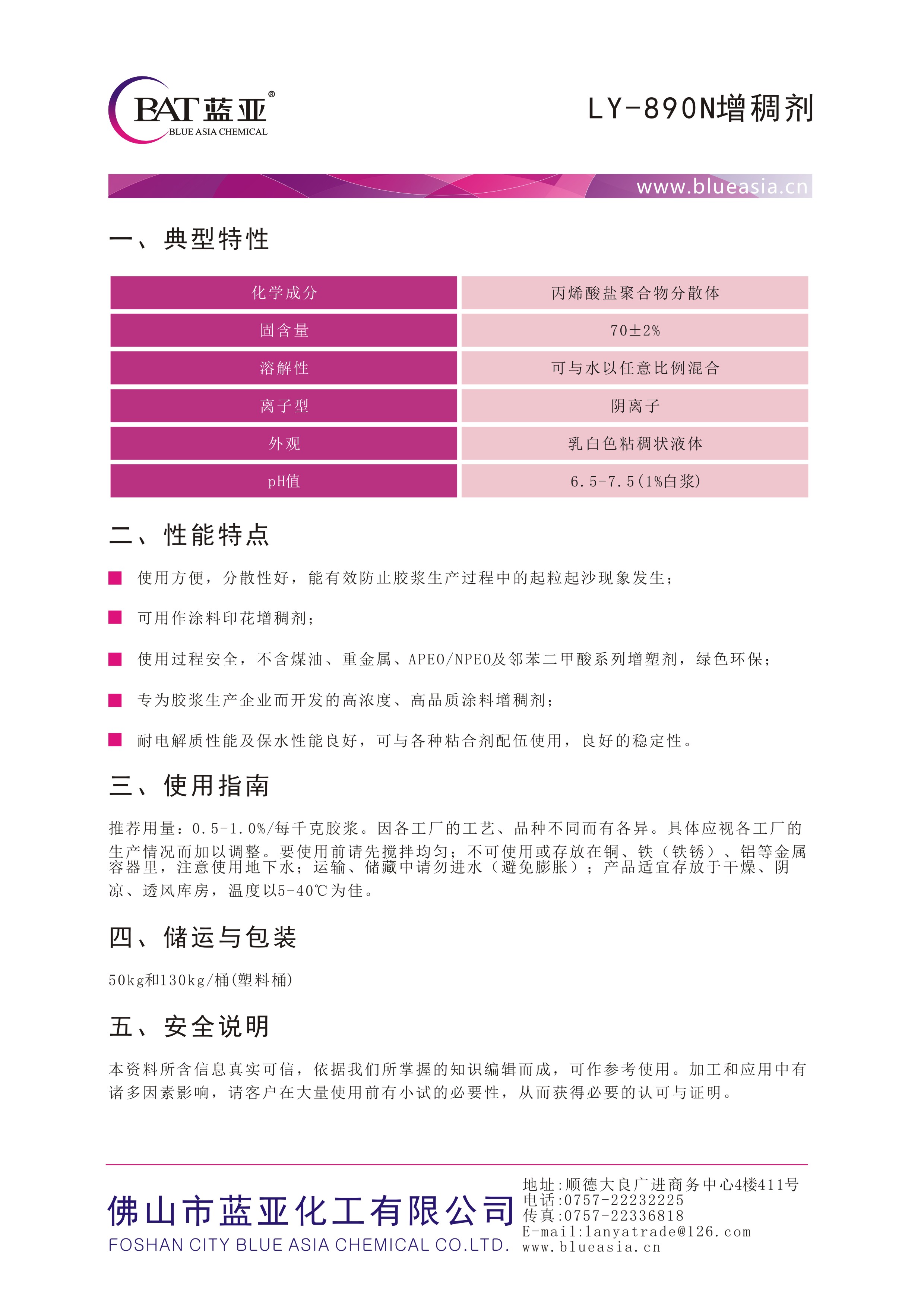 首页 > 产品供应 > 印花材料 > 佛山市蓝亚化工有限公司 > 增稠剂LY-890N