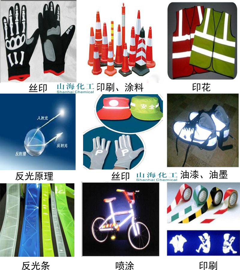反光粉具有极强的逆向回归反射性能,能将85%的光线直接反射回光源处。回归反射所造成的反光亮度,可使驾驶人员和带光源的夜间作业人员在夜间或视野不佳的情况下清楚地看见行人和障碍目标,确保双方安全。
