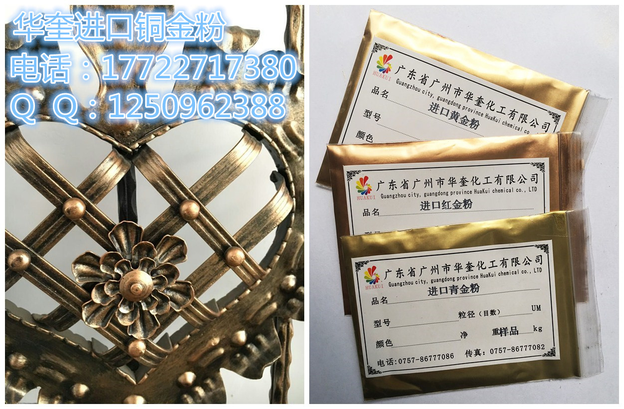 广州华奎铜金属粉17722717380是一种浮型片状颜料,由一定比例的铜、锌和铝合金,经熔炼、球磨、分级到所需要的规格和效果而成。铜金粉的色相可分为青金粉、青金粉、红金粉、紫铜粉、古铜粉等。