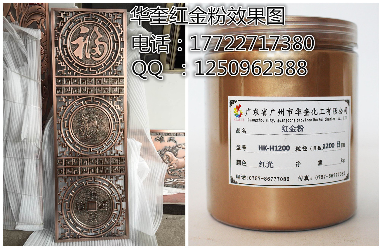 广州华奎铜金属粉17722717380是一种浮型片状颜料,由一定比例的铜、锌和铝合金,经熔炼、球磨、分级到所需要的规格和效果而成。铜金粉的色相可分为黄金粉、青金粉、红金粉、紫铜粉、古铜粉等。