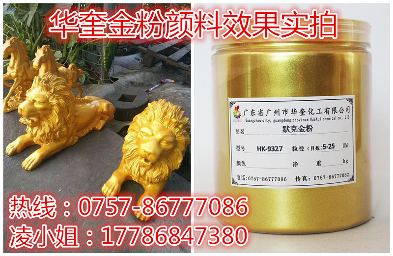 广州华奎金箔粉17786847380由新型合成高透明度片状晶体底材,包覆二氧化钛等金属氧化物组成,通过精密控制二氧化钛等金属氧化物的包覆厚度,产生金颜色一样的效果。特殊钻石珑光泽效果颜料赋予一个全新的、璀璨的、星光闪烁的、钻石般的光学维度空间及美妙的色调,这些富于情感的色彩及光泽,使终端产品的美丽、个性及品质得以充分的展示。