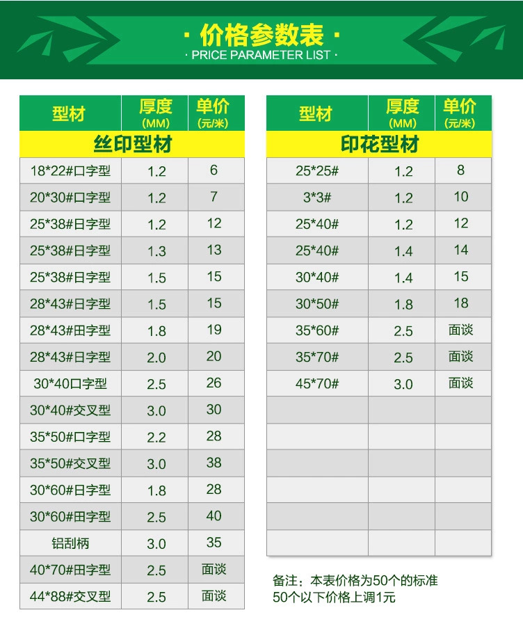 本公司主要生产金属铝框等印刷器材,我们有着金属铝框原材料进口渠道、独特的金属铝框制作加工工艺以及完善的管理流程,我们的金属铝框产品能保证质量的前提下能够普遍低于市场同行价格5%,我们可以提供50种以上的金属铝框铝型材,材料规格及质量完全能满足所有金属铝框、丝网印刷商的需要。