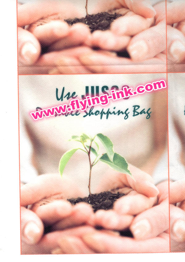 印刷工艺:用胶印机器将升华热转印油墨印在双胶纸(铜版纸)上,印出花纸;然后将花纸和布料一起放在热转印机器内,加热180-220℃,加压,时间15-30S,得出成品(油墨可直接上机使用,不需添加助剂)。