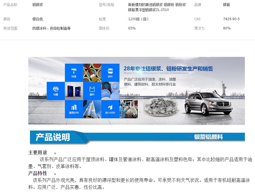 首页 > 产品供应 > 印花材料 > 章丘市金属颜料有限公司 > 脱模剂专用铝银浆厂家银箭漂浮型铝银浆ZL-2510