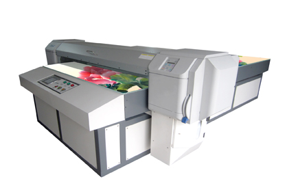 胜彩数码SC-1260自动跑台数码印花机是把一种或数种不同颜色的染料或颜料,用各种不同的方法,在纤维制品上印上所需要的花纹、图案的加工过程。