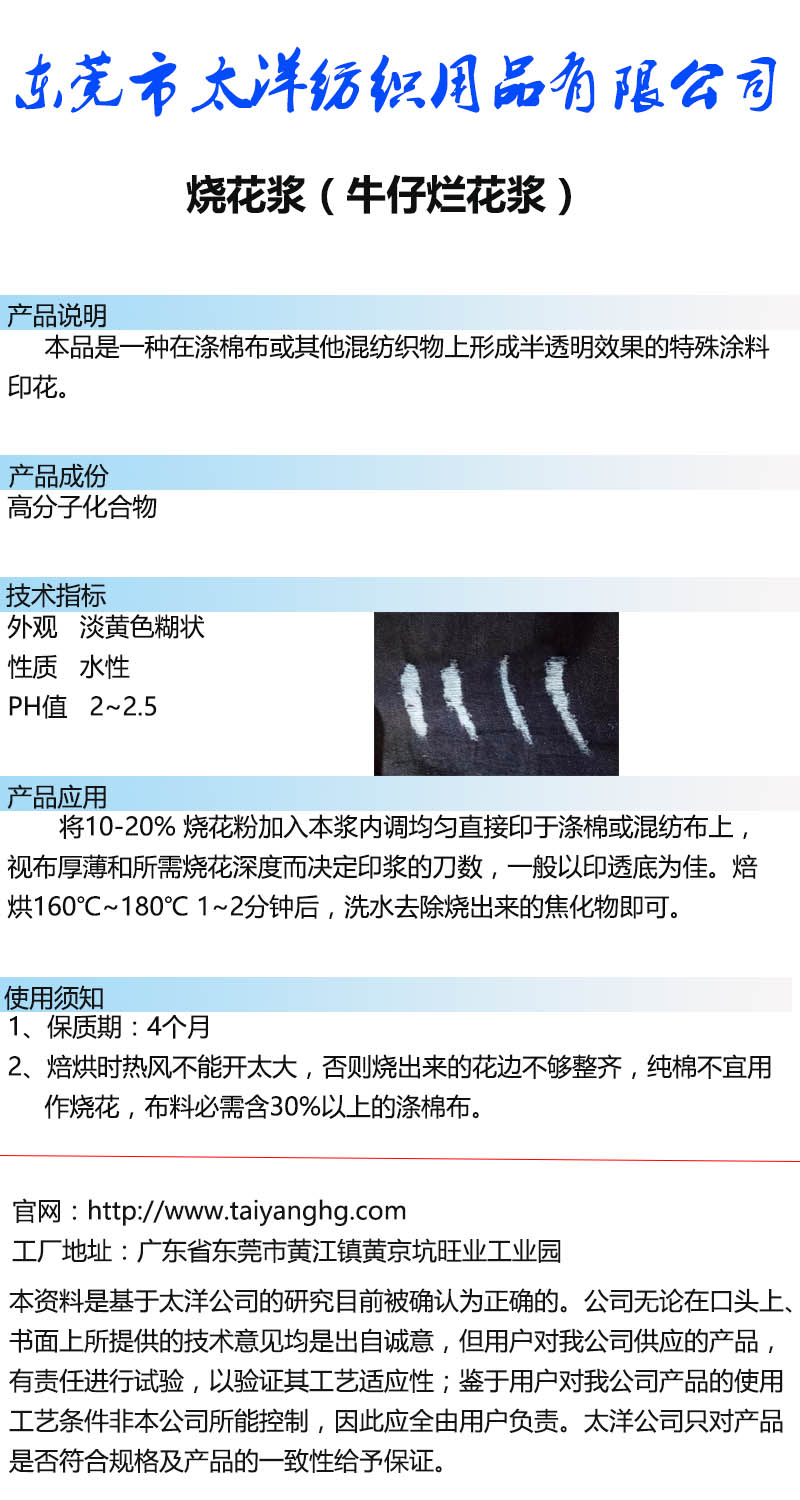 牛仔烂花浆 东莞涤棉烧花浆厂家