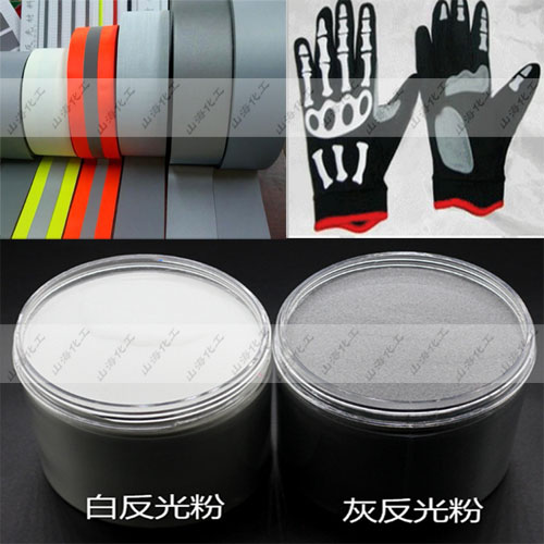 反光浆配制:根据用量多少,将反光粉称量后先用溶剂(环已酮)调成糊状,然后,加入到透明印花浆料中, 调均匀使用。 印刷时,印刷的胶层厚度要薄,以30微米—50微米为宜,以确保反光粉能半露在表面,产生明 亮反光效果。 可以根据用途,采用粗细不等的粒径,取得各种反光效果。(粒径不等,反光效果越好)