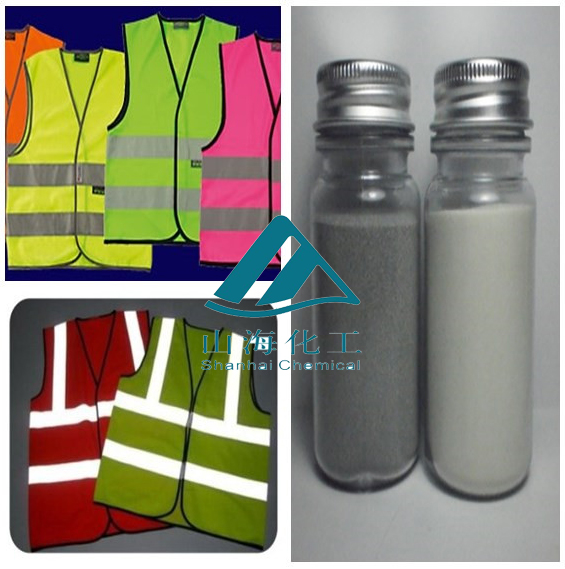 山海化工反光粉可广泛应用于:反光布、反光贴膜、反光油墨、反光涂料、反光标牌、道路、交通、消防设施等,能将射过来的光线高度反射回去,从而大大提高了安全性。