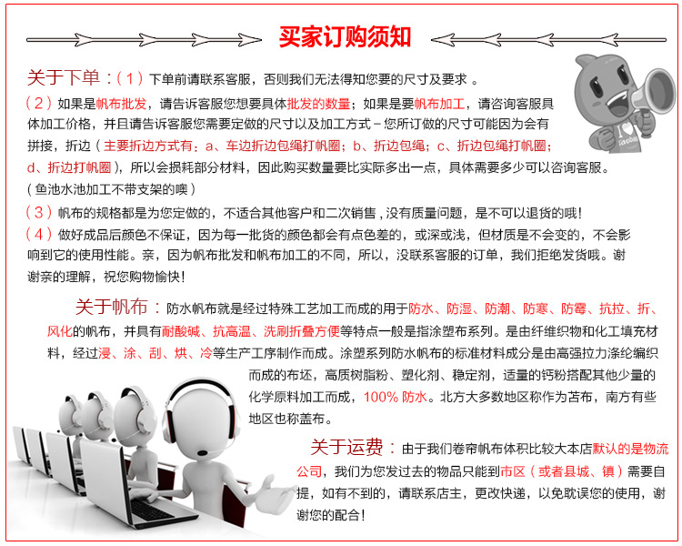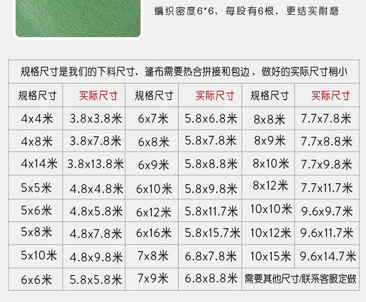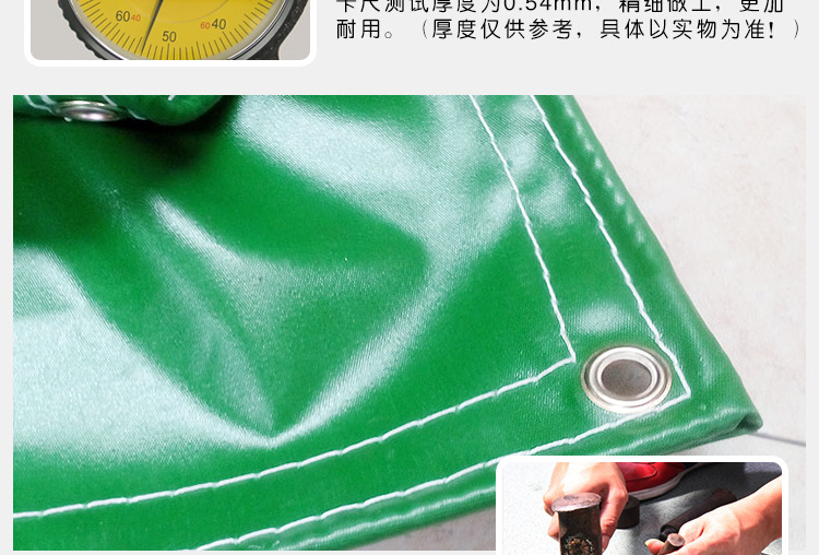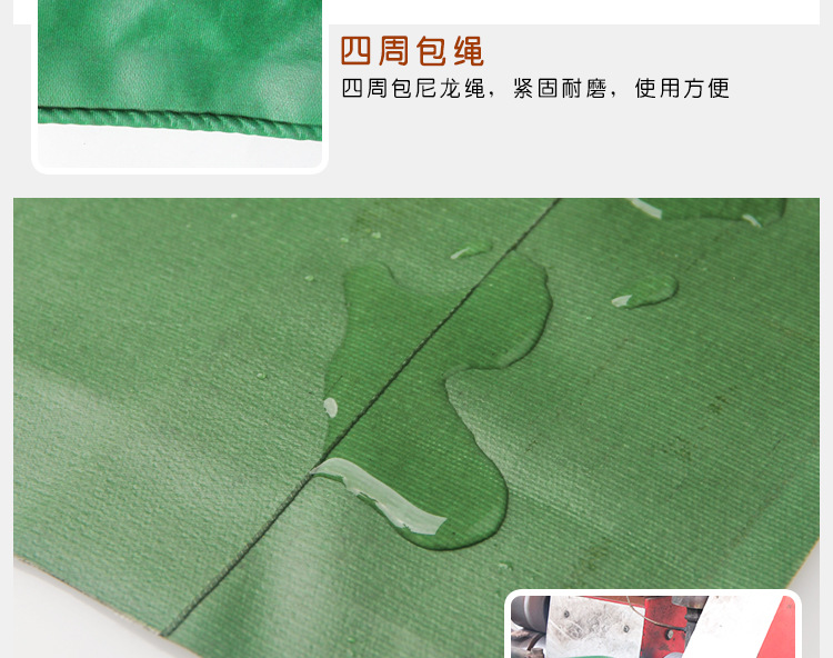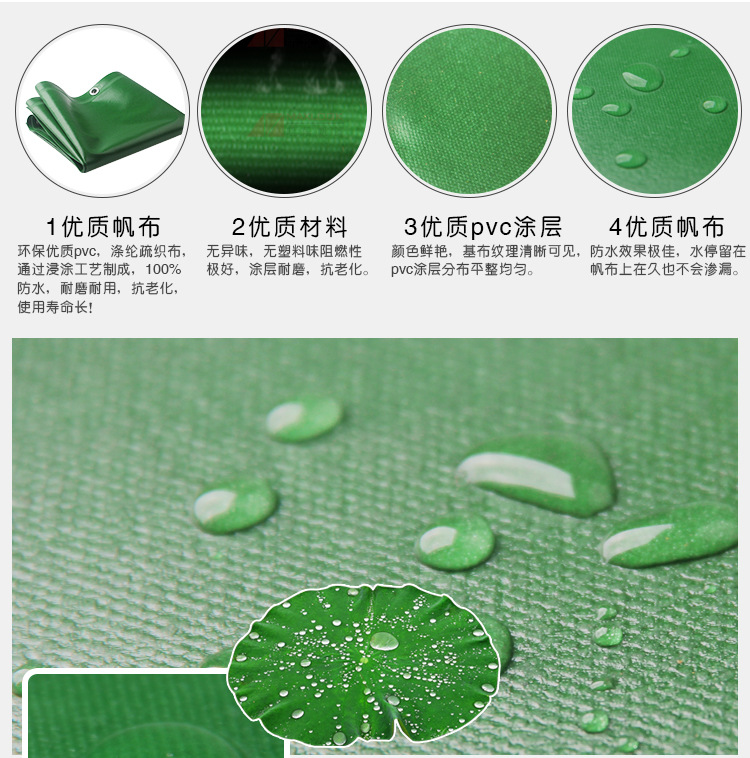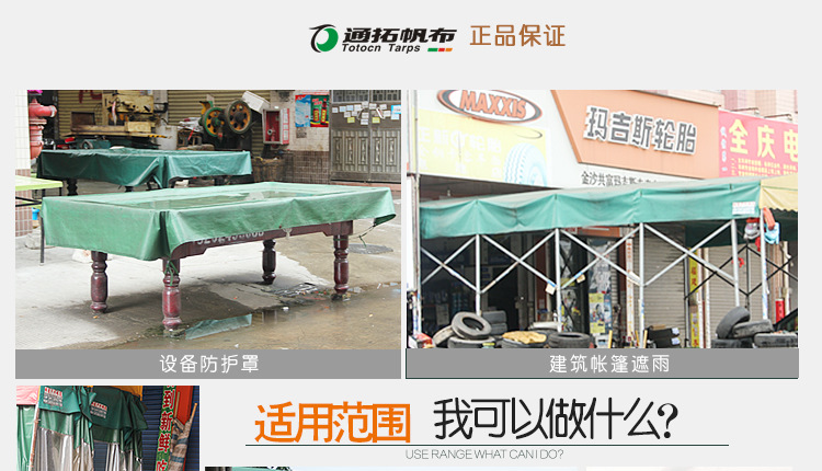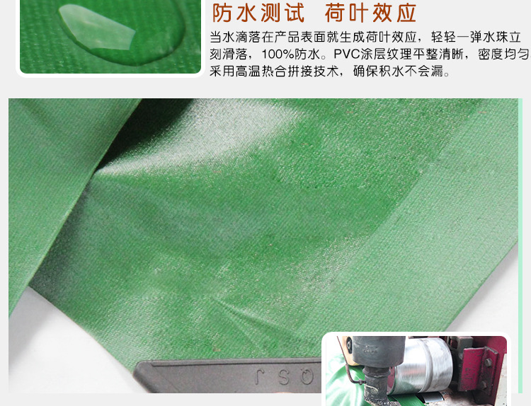 (1)篷布四边全部包边,采用高温焊接,每隔一米打眼,结实耐用,防水性能非常好,而且折叠洗刷方便。