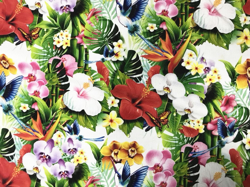 打印工艺:兑水后喷枪/上浆机上处理液--烘干--打印图案--烘干---成品
