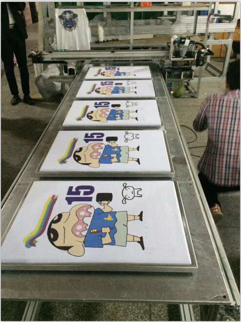 传统服装Tshirt印花技术包括手工丝网印花、Tshirt纸转印和烫画纸转印,这些传统技术明显存在很多不足与劣势。手工丝网印花工序极复杂(从设计到印花完,大约有15道工序),对数量门槛(一般工厂起印量在500件以上)要求高;同时需要熟练工人,全部采用手工操作,出错几率大;同时只能印专色,无法印图片。Tshirt纸转印单件成本高(一张Tshirt纸零售在10元左右);图片效果无渐变色;处理后的衣服完全不透气;耐洗性特别差,一般洗2-3次就基本看不清图案了。烫画纸转印只适合大规模生产;大面积烫画的话,导致衣服透气性极差,耐洗性也不好。这些传统印刷过程都要经过一道转印工艺,图案效果不仅很难保证,其中间产生的废弃物,也极不环保。